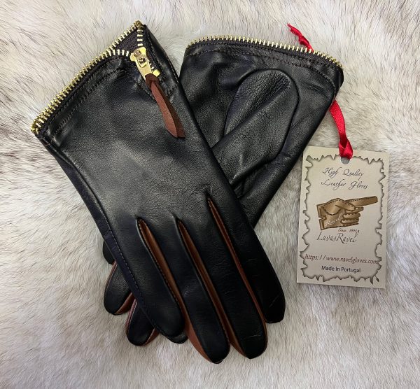 Contrast Detail: A classic black base enhanced by the sophisticated touch of camel leather between the fingers, creating a dynamic visual effect as you move your hands.