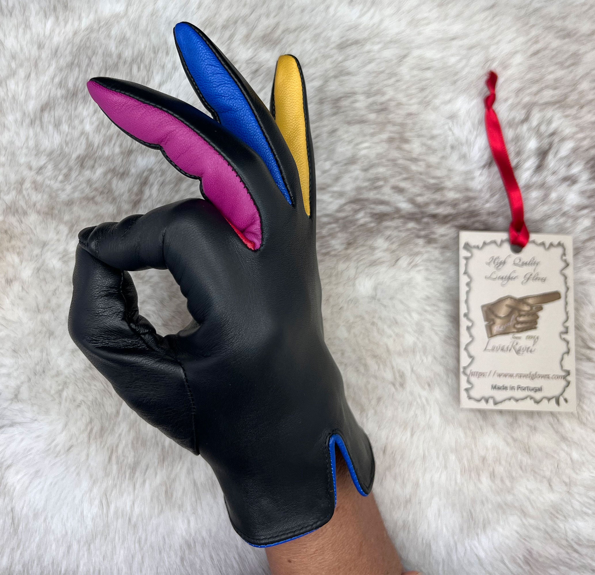Whether you’re walking in winter streets or attending a special event, these Leather Gloves with Black, Blue, Green, Pink, Yellow, and Red accents are the ultimate accessory to showcase your distinctive style. These gloves not only keep you warm but also make a statement, becoming an integral part of your ensemble and reflecting your confidence and individuality.