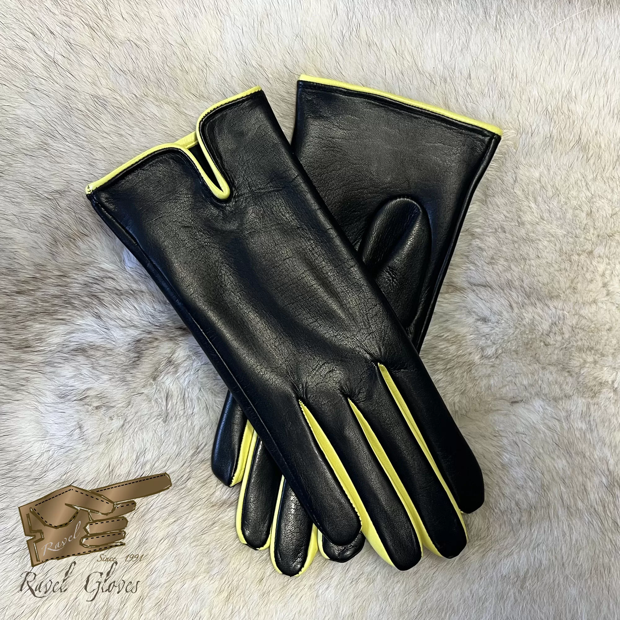 Crafted from premium leather, these gloves boast a rich and supple texture, providing both comfort and durability. The incorporation of two distinctive colors—Black and Yellow —creates a mesmerizing kaleidoscope of hues. The Black base serves as an elegant canvas, while the dynamic interplay of Yellow, adds an exhilarating burst of energy and style.